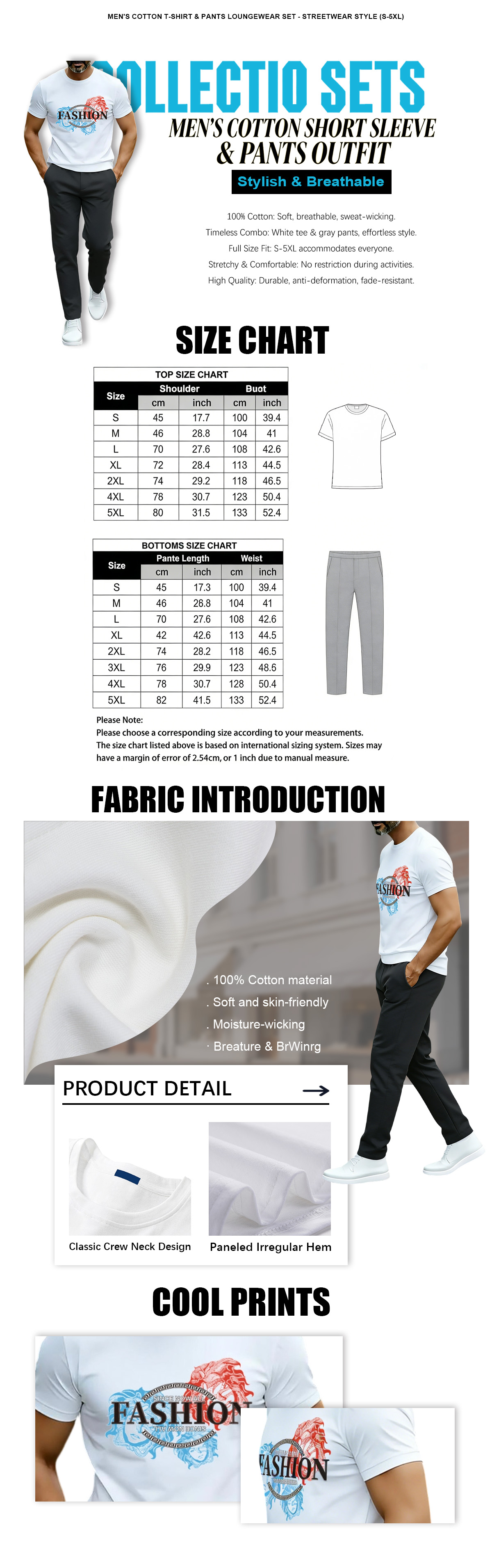 **100% Skin-Friendly Cotton: Breathable & Non-Stuffy.** Crafted from premium pure cotton fabric, this set offers a soft, skin-friendly touch with exceptional breathability and moisture-wicking properties. Whether for daily commutes or casual outings, it keeps you feeling dry and comfortable at all times—bidding farewell to heat and stickiness. Suitable for all four seasons, it is an especially perfect fit for spring and summer.