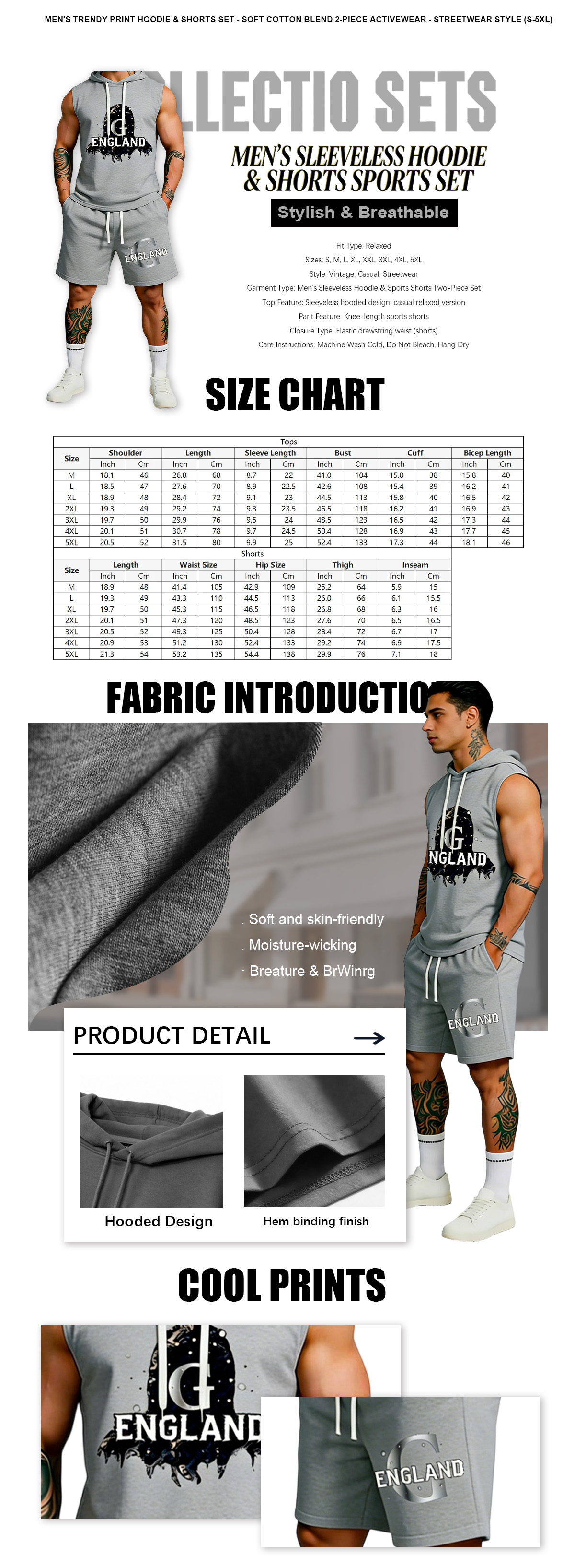 This sleeveless hoodie and shorts two-piece set features luxury brand inspired print design, stylish and eye-catching for modern streetwear. The outfit is lightweight and breathable, providing all-day comfort without restraint. With a relaxed fit and versatile casual style, it is perfect for daily wear, outdoor activities, street fashion and casual outings. Available in sizes from S to 5XL, this set suits various body types and is easy to match with any footwear. A must-have trendy essential for your wardrobe.