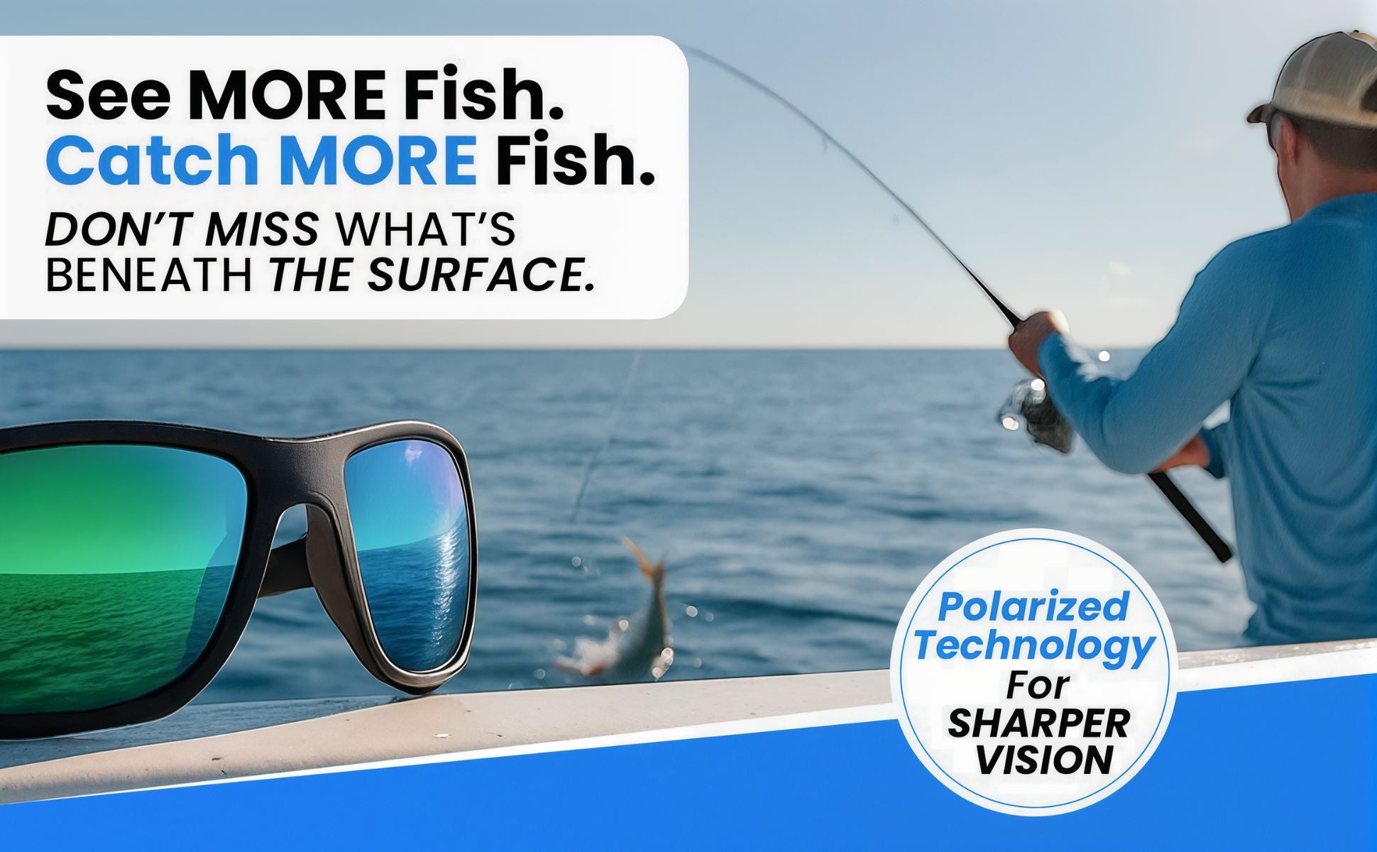 • HD Polarized LensesReflects glare so you can see DEEPER into the water.