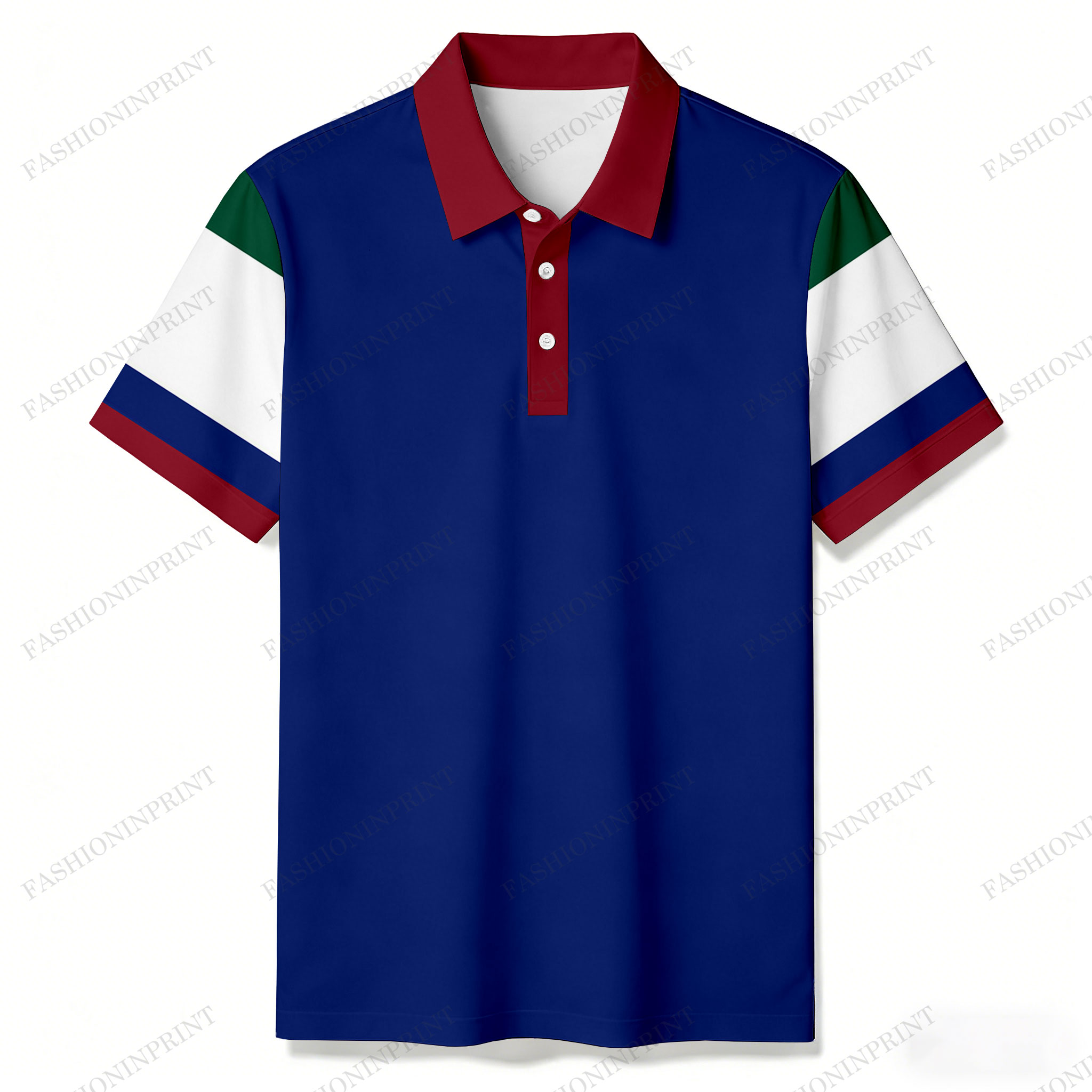 Men's Casual Royal Blue & Dark Red Color Matching Striped Printed Short Sleeved Polo Shirt